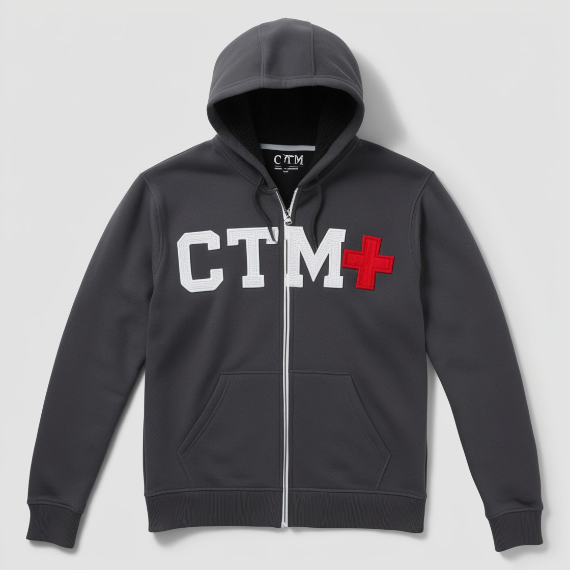 Elevate your streetwear game with this Brown Gothic Zip-Up Hoodie, featuring a bold central design that fuses religious iconography with modern street fashion. This hoodie showcases a striking pink cross graphic on both the hood and chest, flanked by white Old English “ctm” lettering for a powerful aesthetic statement.